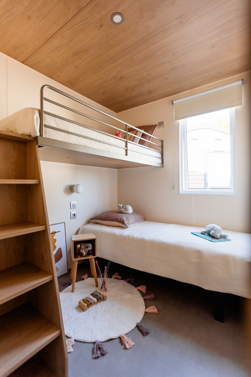 With 3 bedrooms, 2 separate bathrooms and 40 m² of perfectly arranged space, everyone can enjoy their own space: adults have a master suite with a private bathroom for privacy, while children have their own mezzanine area, a perfect little refuge for dreaming, playing or reading.